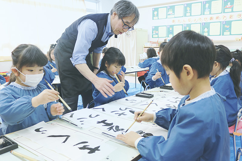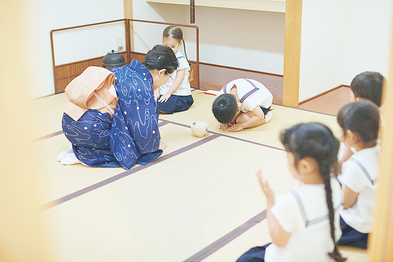 本園では保育時間内に、造形、珠算、そして茶道や書道などの教室も行っています。