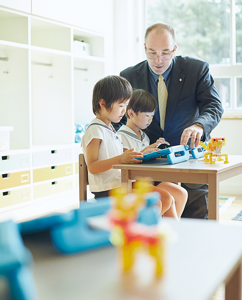 プログラミング学習を始める適齢期は3歳と言われていますが、本園でも幼少期からのICT教育を重要と捉え、2017年より日本の幼稚園で初めてプログラミング学習キットを採用し、子どもたちの探究心や創造力、未来を切り開く思考力などを育むよう努めてきました。